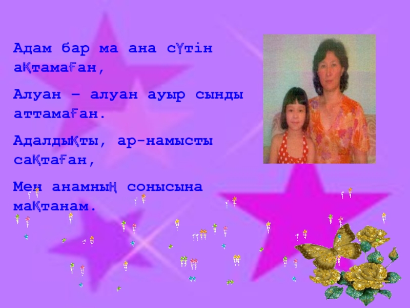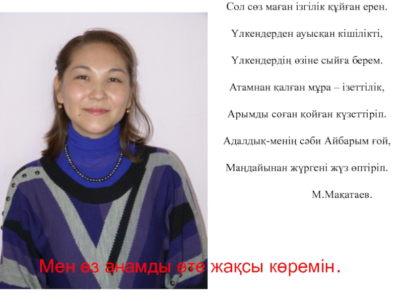 Слайд 7Ардақты ана, аяулы ана, қымбаттым,