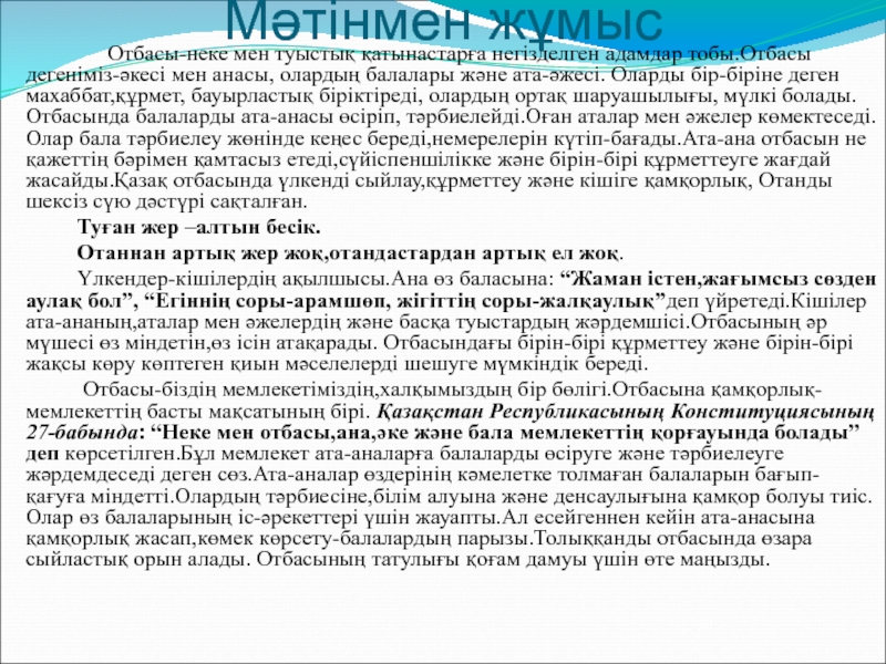 Біздің үйде бәрінің Міндеті бар атқарар. Татулық пен сый-құрмет Осындайдан басталар.