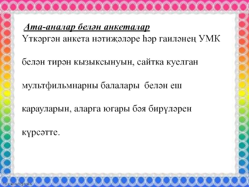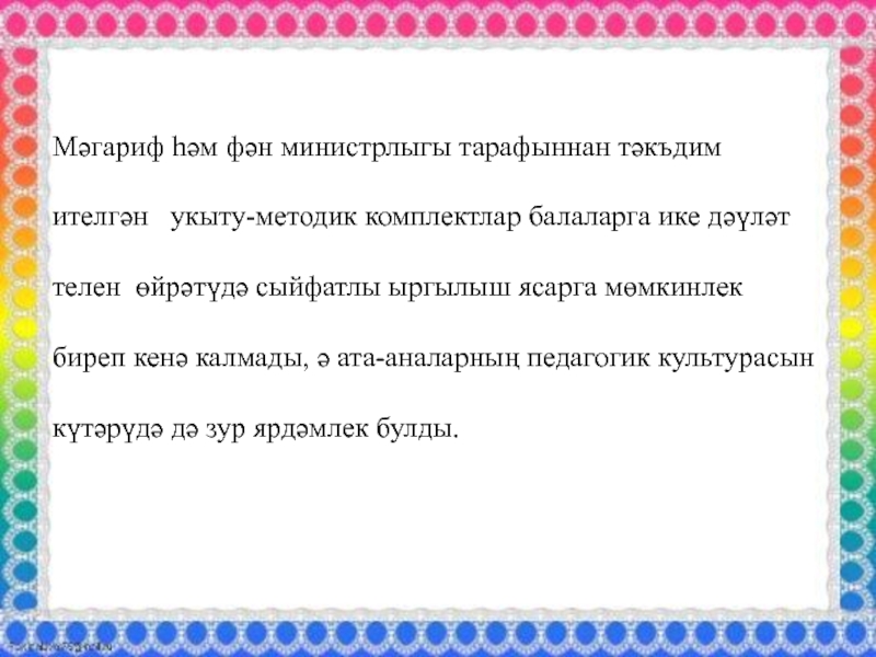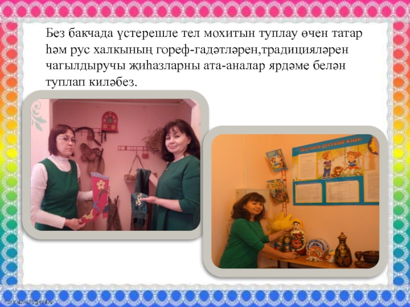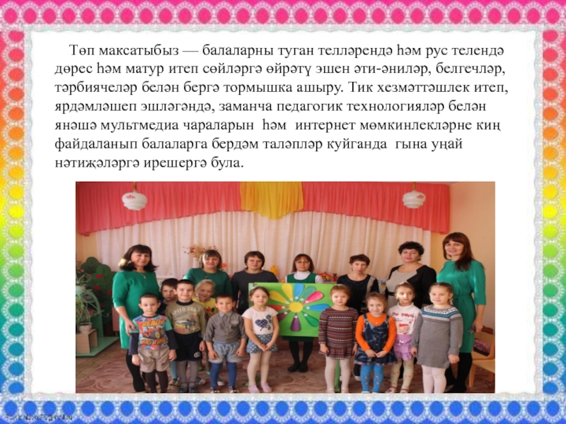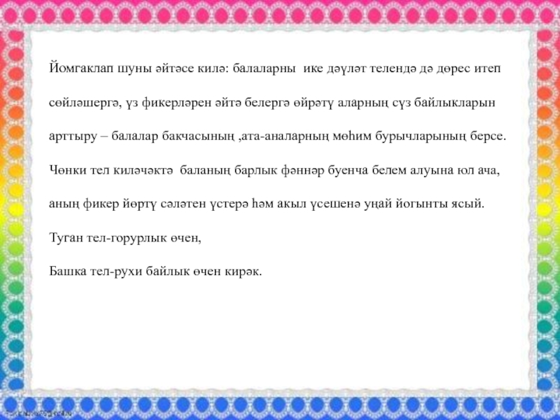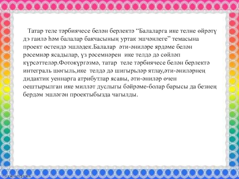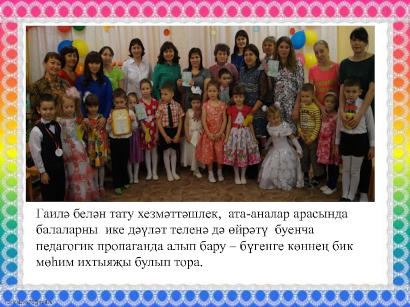 Слайд 22 Татар теле тәрбиячесе белән берлектә “Балаларга ике