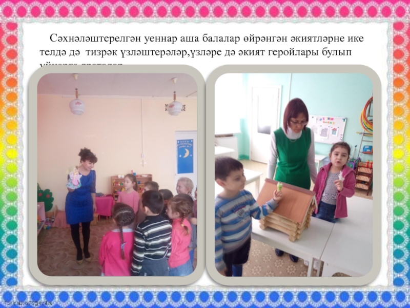 Слайд 26 Сәхнәләштерелгән уеннар аша балалар өйрәнгән әкиятләрне