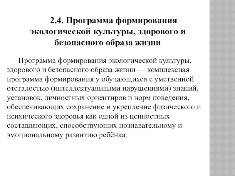 Программа формирования экологической культуры, здорового и безопасного образа жизни