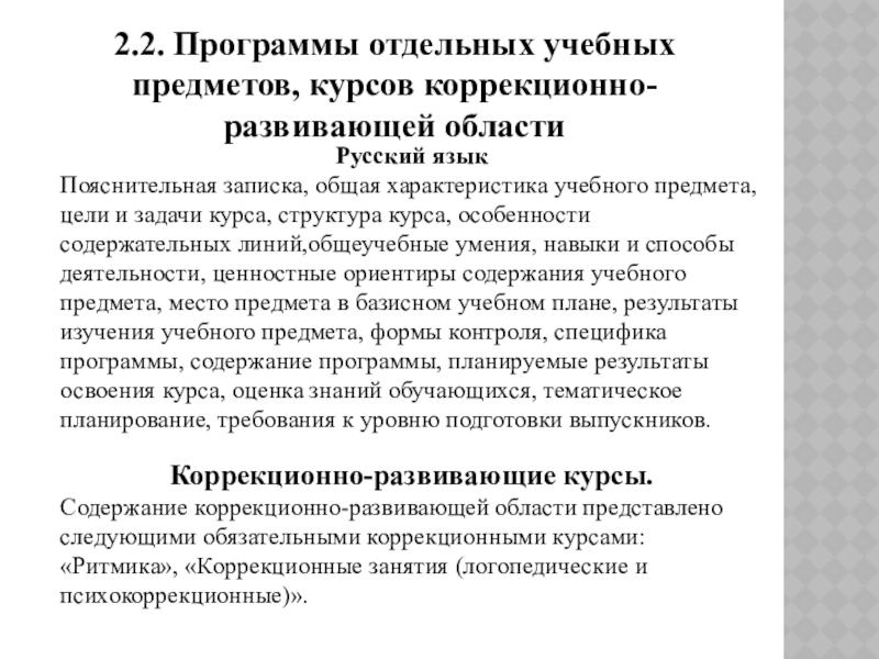 2.2. Программы отдельных учебных предметов, курсов коррекционно-развивающей области