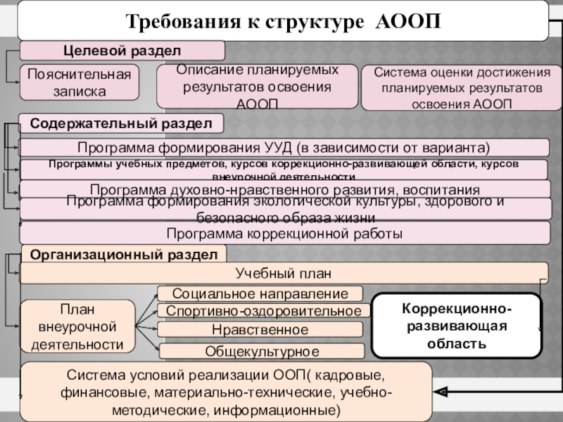 Система условий реализации ООП( кадровые, финансовые, материально-технические, учебно-методические, информационные)
