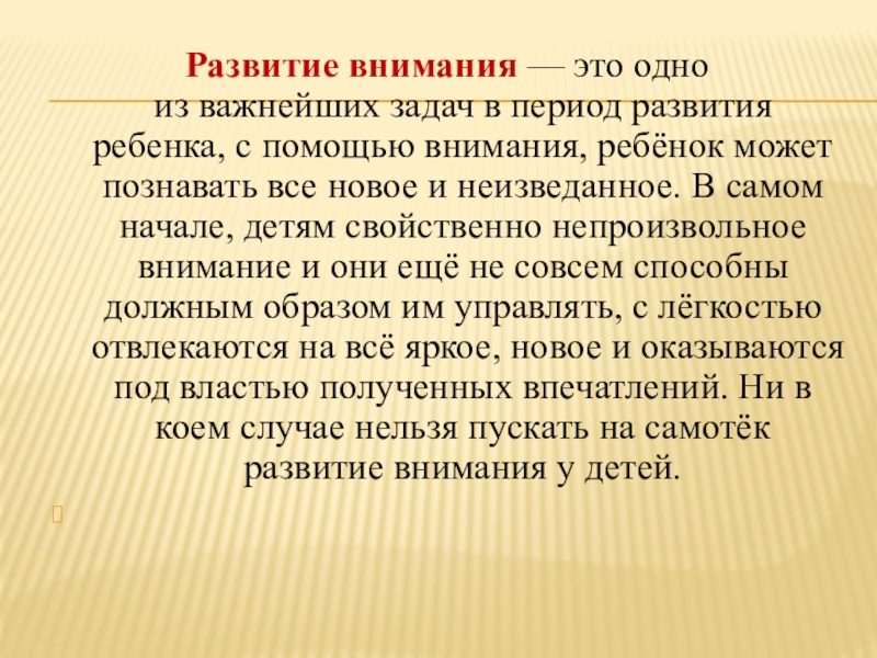 Слайд 2Развитие внимания — это одно из важнейших задач в период развития ребенка, с помощью внимания, ребёнок может