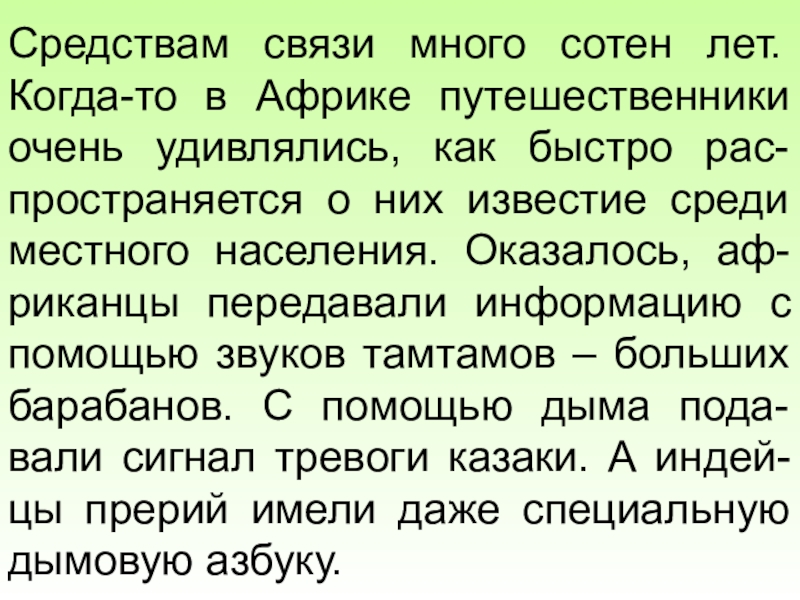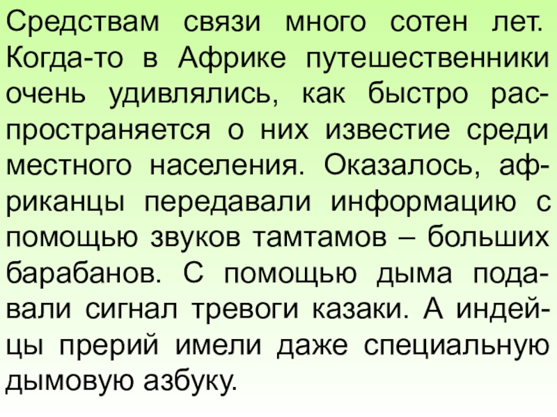 Слайд 24Средствам связи много сотен лет. Когда-то в Африке путешественники очень удивлялись,