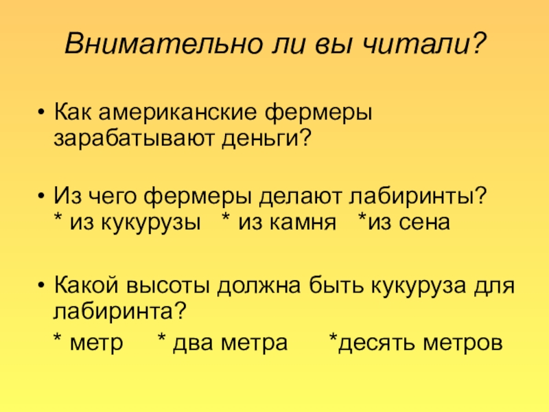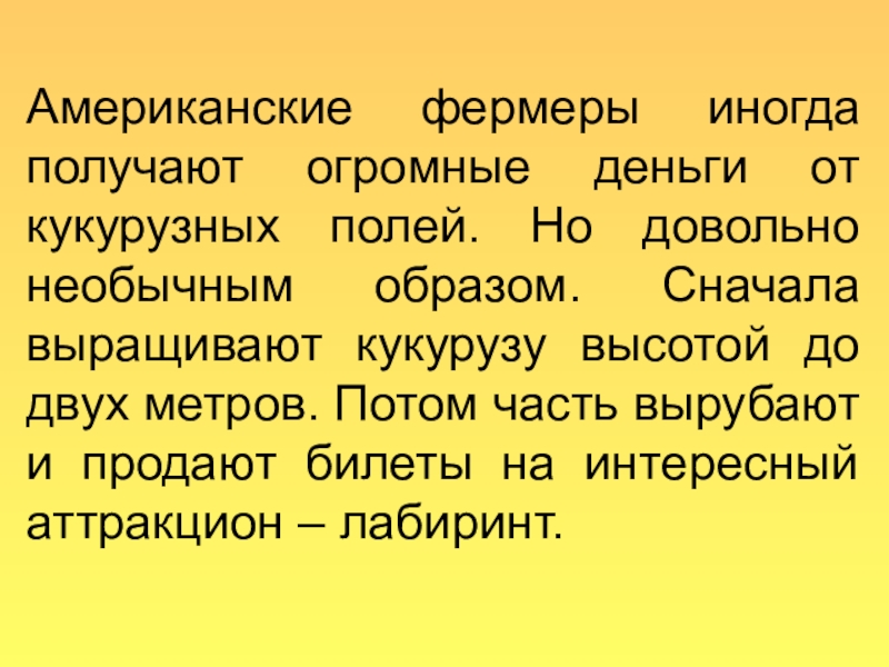 Слайд 4Американские фермеры иногда получают огромные деньги от кукурузных полей. Но довольно