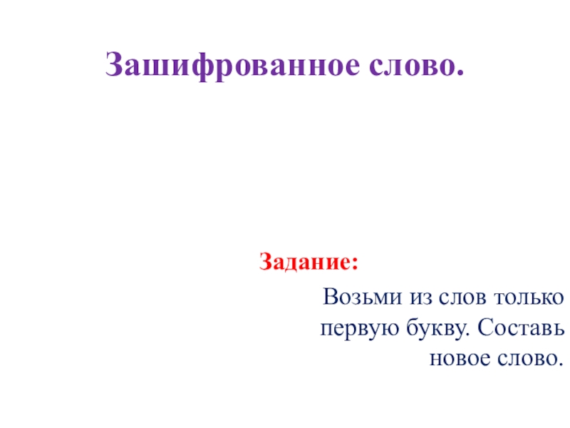 Зашифрованное слово.Задание: Возьми из слов только первую букву. Составь новое слово.