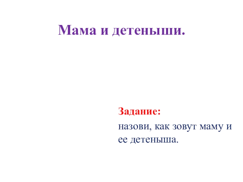 Мама и детеныши.Задание: назови, как зовут маму и ее детеныша.