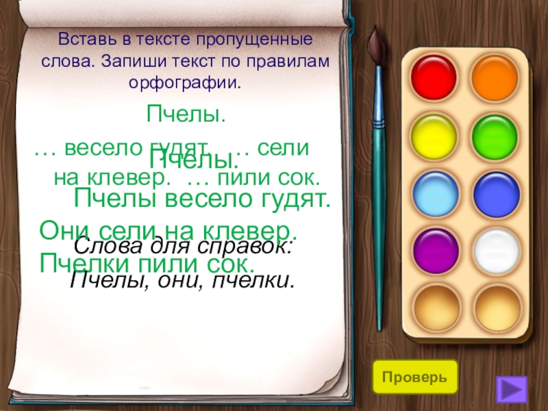 Пчелы весело гудят. Они сели на клевер. Пчелки пили сок.