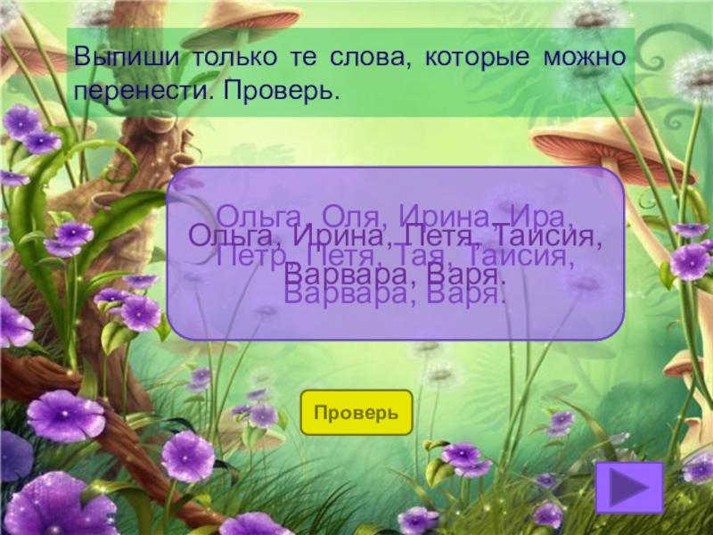 Ольга, Ирина, Петя, Таисия, Варвара, Варя.