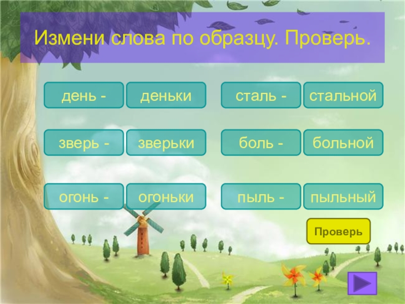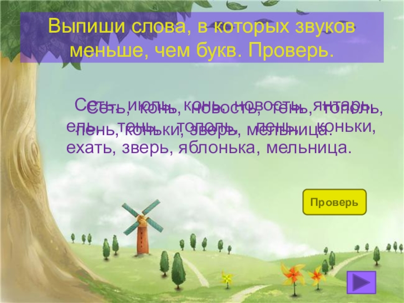 Сеть, конь, новость, тень, тополь, пень, коньки, зверь, мельница.