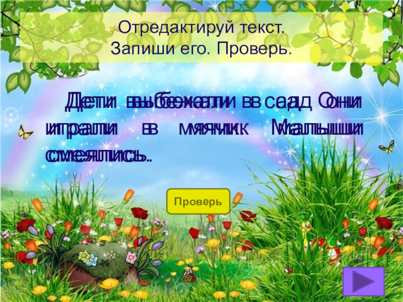 Дети выбежали в сад. Они играли в мячик. Малыши смеялись.