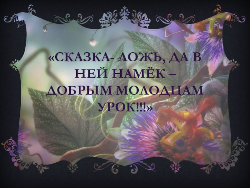 Слайд 10«Сказка- ложь, да в ней намёк – добрым молодцам урок!!!»