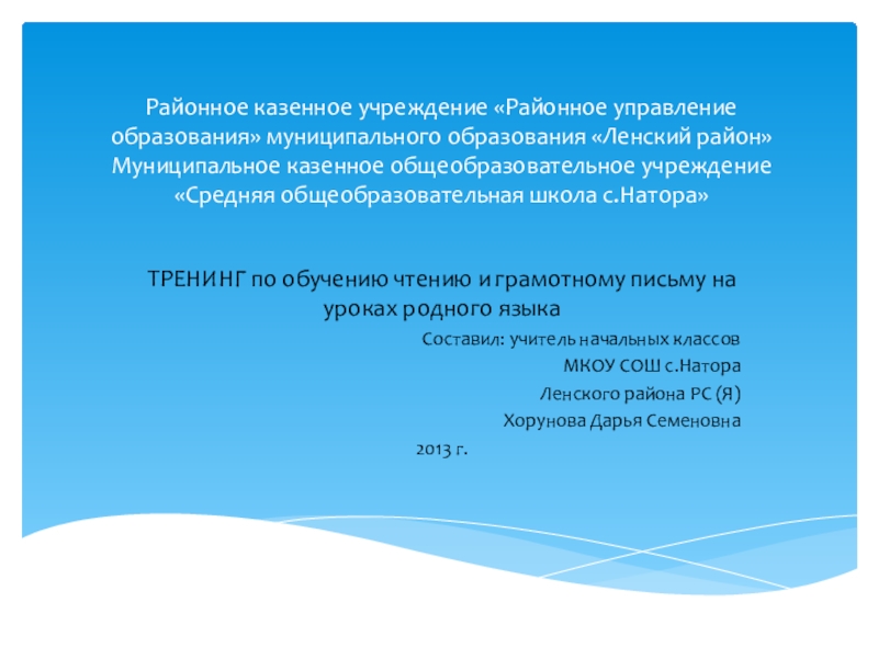 ТРЕНИНГ по обучению чтению и грамотному письму на уроках родного языка