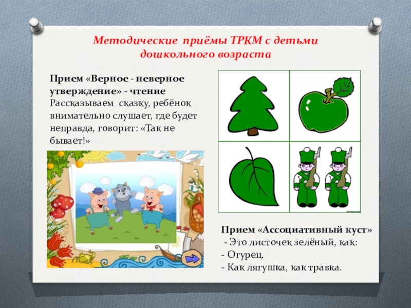 Рассказываем сказку, ребёнок внимательно слушает, где будет неправда, говорит: «Так не бывает!»