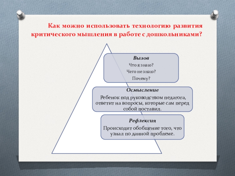 1. Познакомить с приемами использования технологии развития критического мышления в работе с детьми дошкольного возраста;