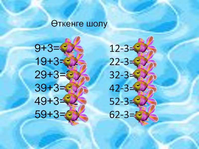 Өткенге шолу9+3=1219+3=2229+3=3239+3=4249+3=5259+3=6212-3=922-3=1932-3=2942-3=3952-3=4962-3=59
