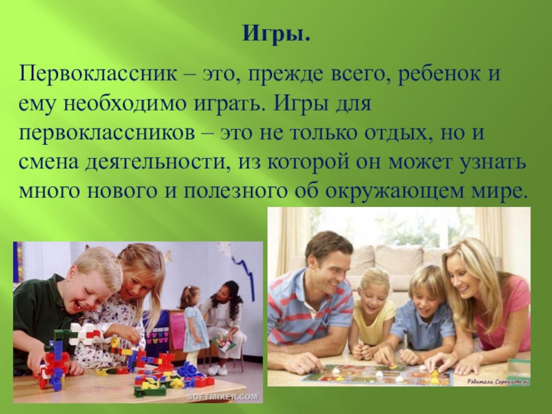 Игры для первоклассников – это не только отдых, но и смена деятельности, из которой он может узнать много нового и полезного об окружающем мире.