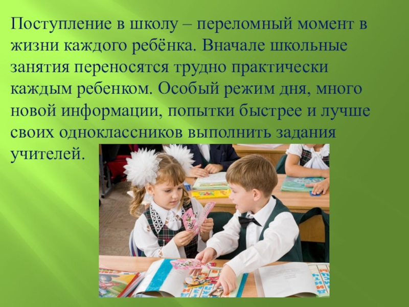 Слайд 2Поступление в школу – переломный момент в жизни каждого ребёнка. Вначале