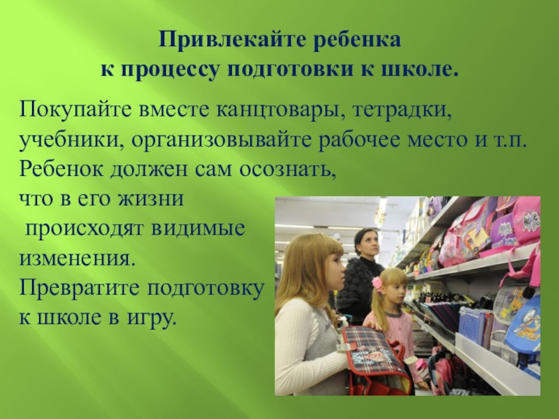 учебники, организовывайте рабочее место и т.п. Ребенок должен сам осознать,