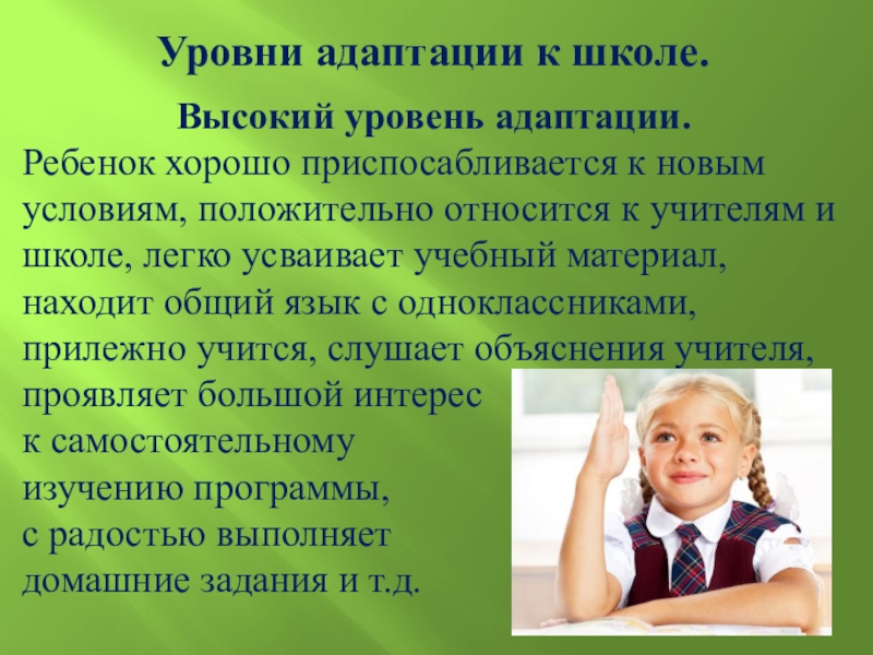 как ребенок адаптируется, рекомендуется узнать об уровнях адаптации к школе: