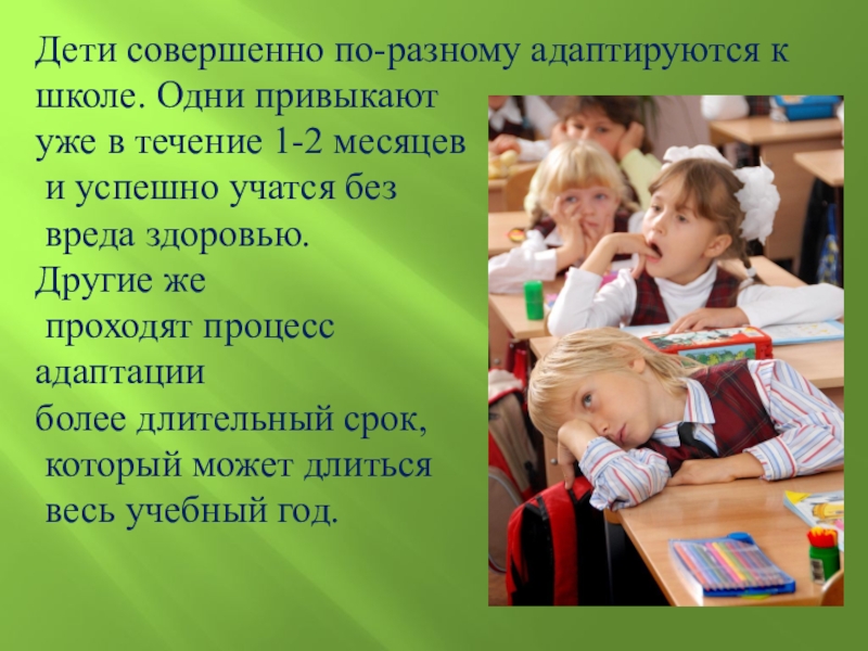 Слайд 3Дети совершенно по-разному адаптируются к школе. Одни привыкают