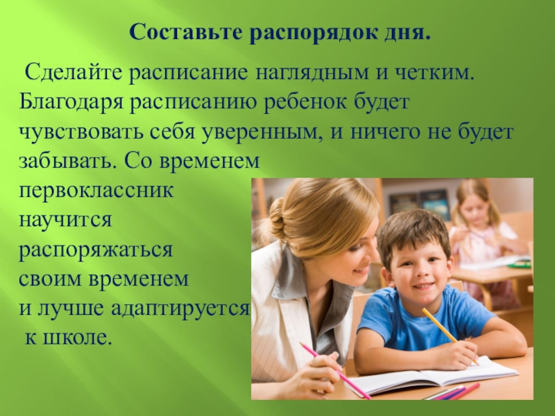 Сделайте расписание наглядным и четким. Благодаря расписанию ребенок