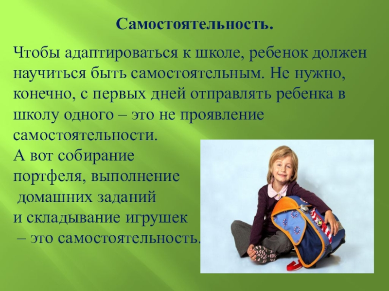 Чтобы адаптироваться к школе, ребенок должен научиться быть самостоятельным. Не