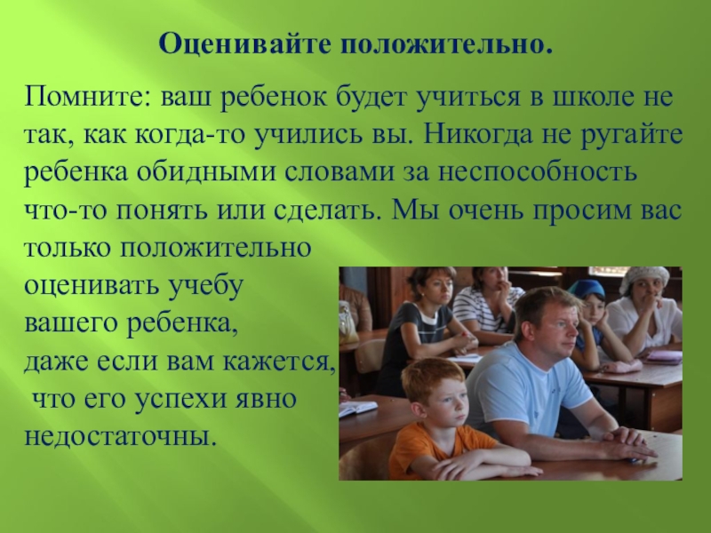 когда-то учились вы. Никогда не ругайте ребенка обидными словами за неспособность что-то понять или сделать. Мы очень просим вас только положительно