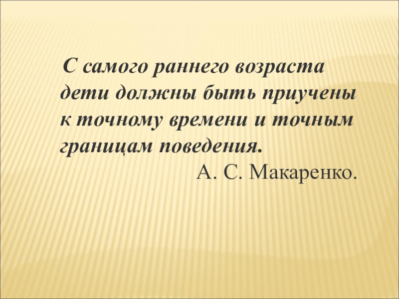 С самого раннего возраста дети должны быть приучены к точному времени и точным границам поведения.А. С.