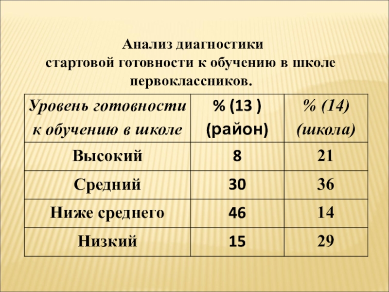 Анализ диагностики стартовой готовности к обучению в школе первоклассников.