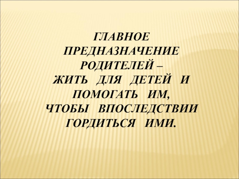 ГЛАВНОЕ ПРЕДНАЗНАЧЕНИЕ РОДИТЕЛЕЙ – ЖИТЬ ДЛЯ ДЕТЕЙ И ПОМОГАТЬ ИМ, ЧТОБЫ ВПОСЛЕДСТВИИ ГОРДИТЬСЯ ИМИ.