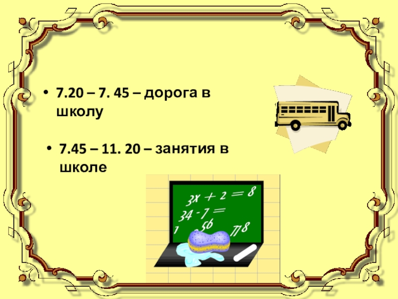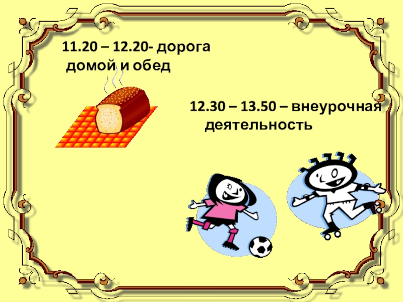 Слайд 8 11.20 – 12.20- дорога домой и обед