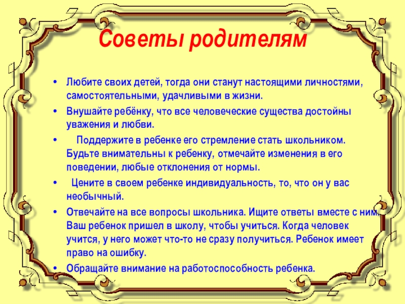 Отвечайте на все вопросы школьника. Ищите ответы вместе с ним. Ваш ребенок пришел в школу, чтобы учиться. Когда человек учится, у него может что-то не сразу получиться. Ребенок имеет право на ошибку.