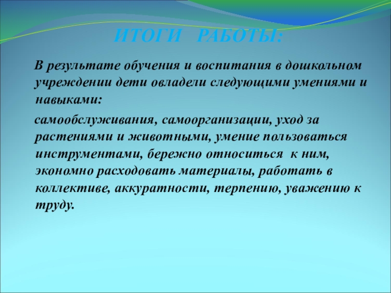Обучение трудовым умениям и навыкам, их дальнейшее совершенствование