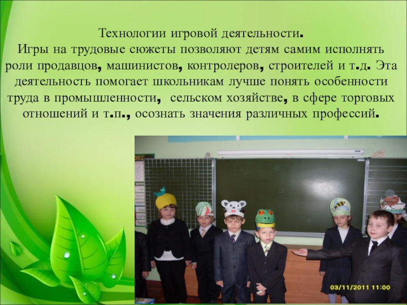 Технологии игровой деятельности. Игры на трудовые сюжеты позволяют детям самим исполнять роли продавцов, машинистов, контролеров, строителей и