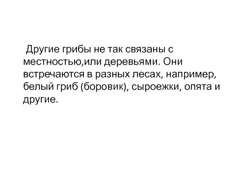 Слайд 16 Другие грибы не так связаны с местностью,или деревьями. Они встречаются в