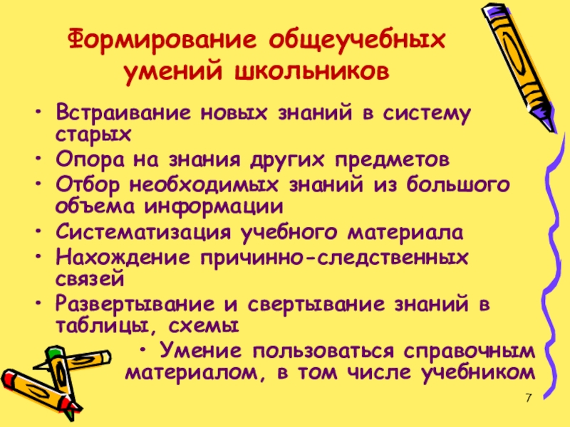 работа учителя по формированию и развитию общеучебных навыков и умений;