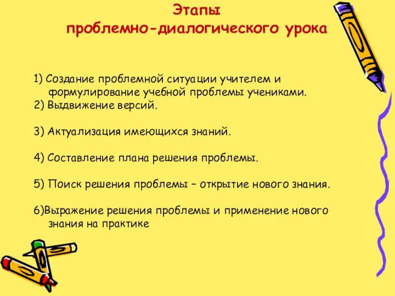 1) Создание проблемной ситуации учителем и формулирование учебной