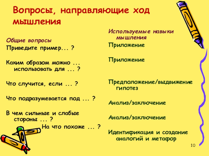 Это значит: уметь точно формулировать проблемы; быстро, эффективно собирать и оценивать информацию; выявлять в проблеме традиционные подходы и противоречия; самостоятельно формировать альтернативные взгляды на проблему; гарантированно придумывать новые идеи и предлагать оригинальные варианты решений проблем.
