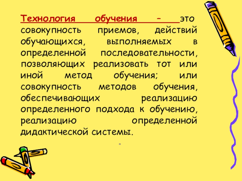 Слайд 42Технология обучения – это совокупность приемов, действий обучающихся, выполняемых в определенной