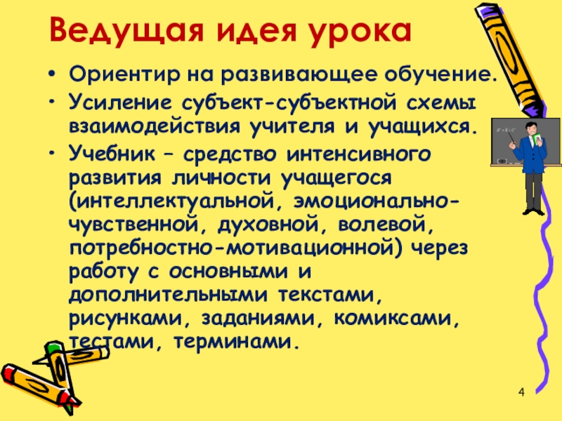 Учебник – средство интенсивного развития личности учащегося (интеллектуальной, эмоционально-чувственной, духовной, волевой, потребностно-мотивационной) через работу с основными и дополнительными текстами, рисунками, заданиями, комиксами, тестами, терминами.