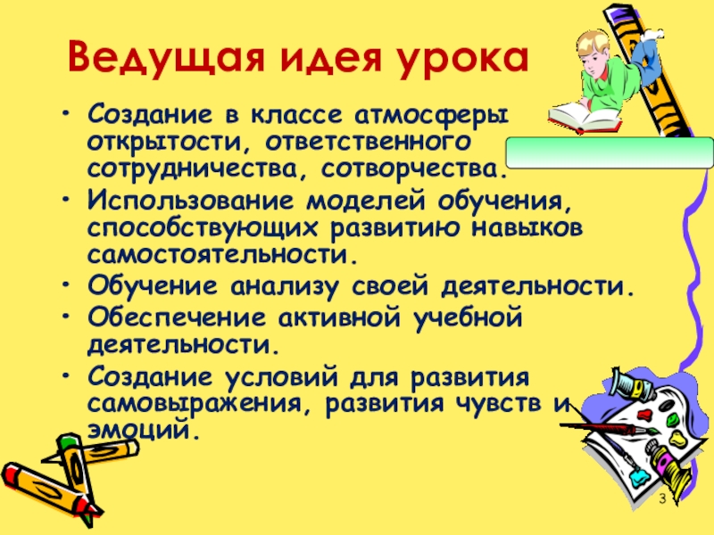 Создание в классе атмосферы открытости, ответственного сотрудничества, сотворчества.