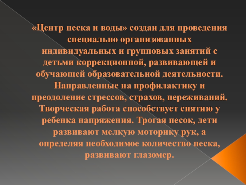 Презентация, доклад Центр песка и воды