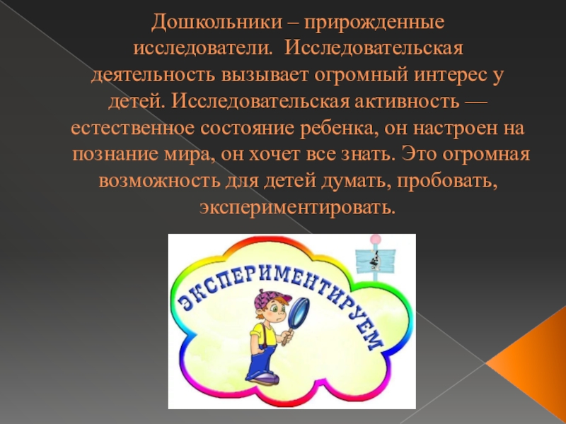 Слайд 2Дошкольники – прирожденные исследователи.  Исследовательская деятельность вызывает огромный интерес у детей. Исследовательская