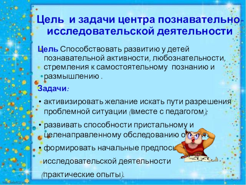 Цель и задачи центра познавательно- исследовательской деятельности