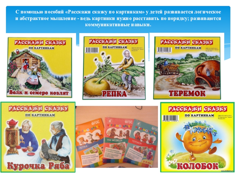 и абстрактное мышление - ведь картинки нужно расставить по порядку; развиваются коммуникативные навыки.