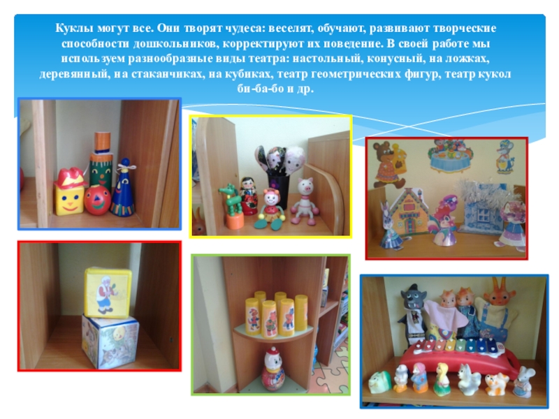 Слайд 4Куклы могут все. Они творят чудеса: веселят, обучают, развивают творческие способности
