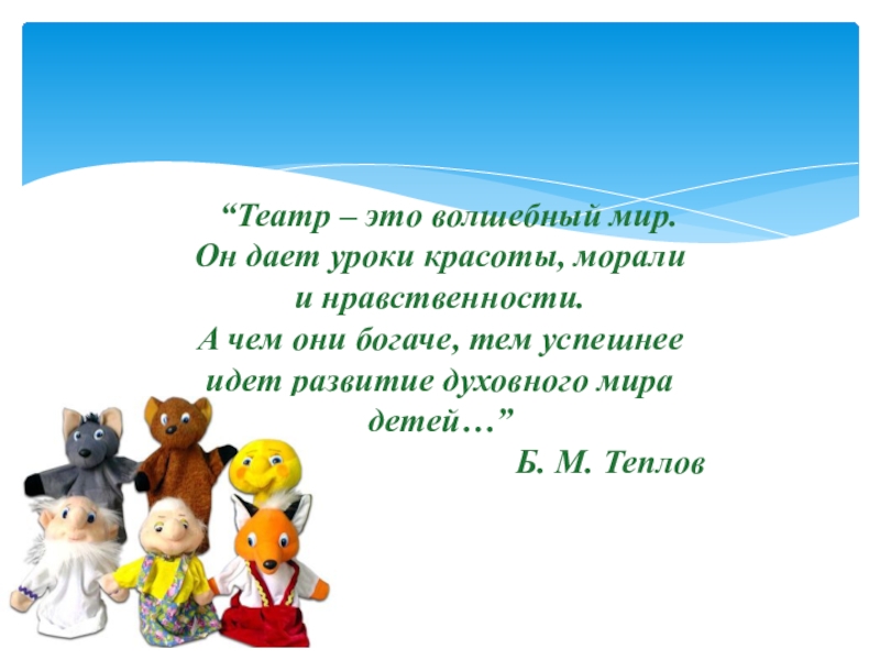 Пальчиковый театр – это уникальная возможность расположить сказку на ладошке у ребенка, в которой он сможет занять, роль любого героя; развитие у детей воображения, мышления и речи, развитие мелкой моторики: в ходе игр у детей, вырабатывается ловкость, умение управлять своими движениями, концентрировать внимание на одном виде деятельности, что является для ребенка естественным средством самовыражения, а использование символических материалов помогает ему дистанцироваться от проблемных (трудных) ситуаций.