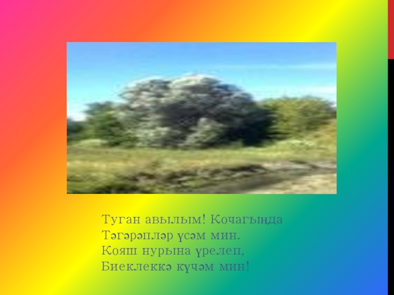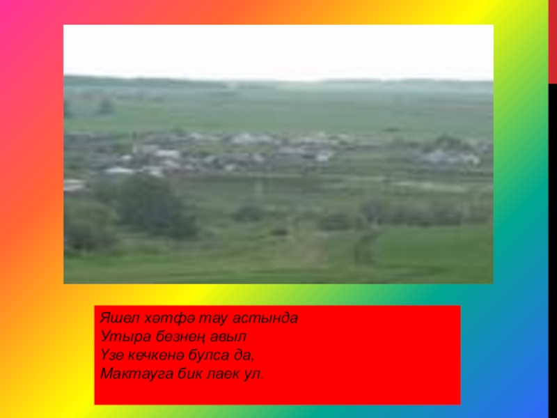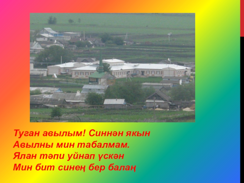 Мин туган авылымны, аның гүзәл табигатен бик яратам, аның белән чиксез горурланам.
